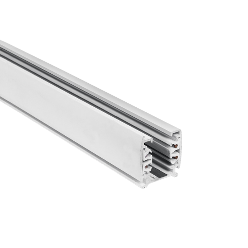 Three-phase 16 A square track for surface or pendant mounting, aluminum body, length 2000 mm, width 32 mm, height 35 mm, white finish.