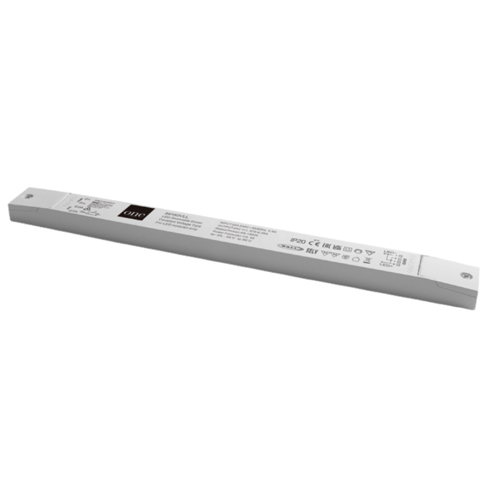 Driver à courant constant 15-150W 24V DC, DALI et Push to Dim, dimmable, adapté pour installation à l’intérieur d’un profilé, IP20.