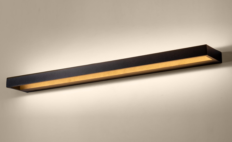 Applique murale LED, 1300 × 165 × 35 mm double émission haut/bas, 30 W, CCT réglable 2700–5700 K, CRI ≥80, driver DALI DT8 flicker-free, corps aluminium argent, IP20.