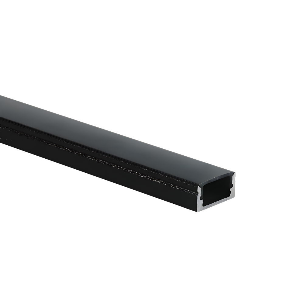 Profilé aluminium longueur 2000 mm, largeur 17 mm, hauteur 9 mm, forme rectangulaire, finition noire, diffuseur PC