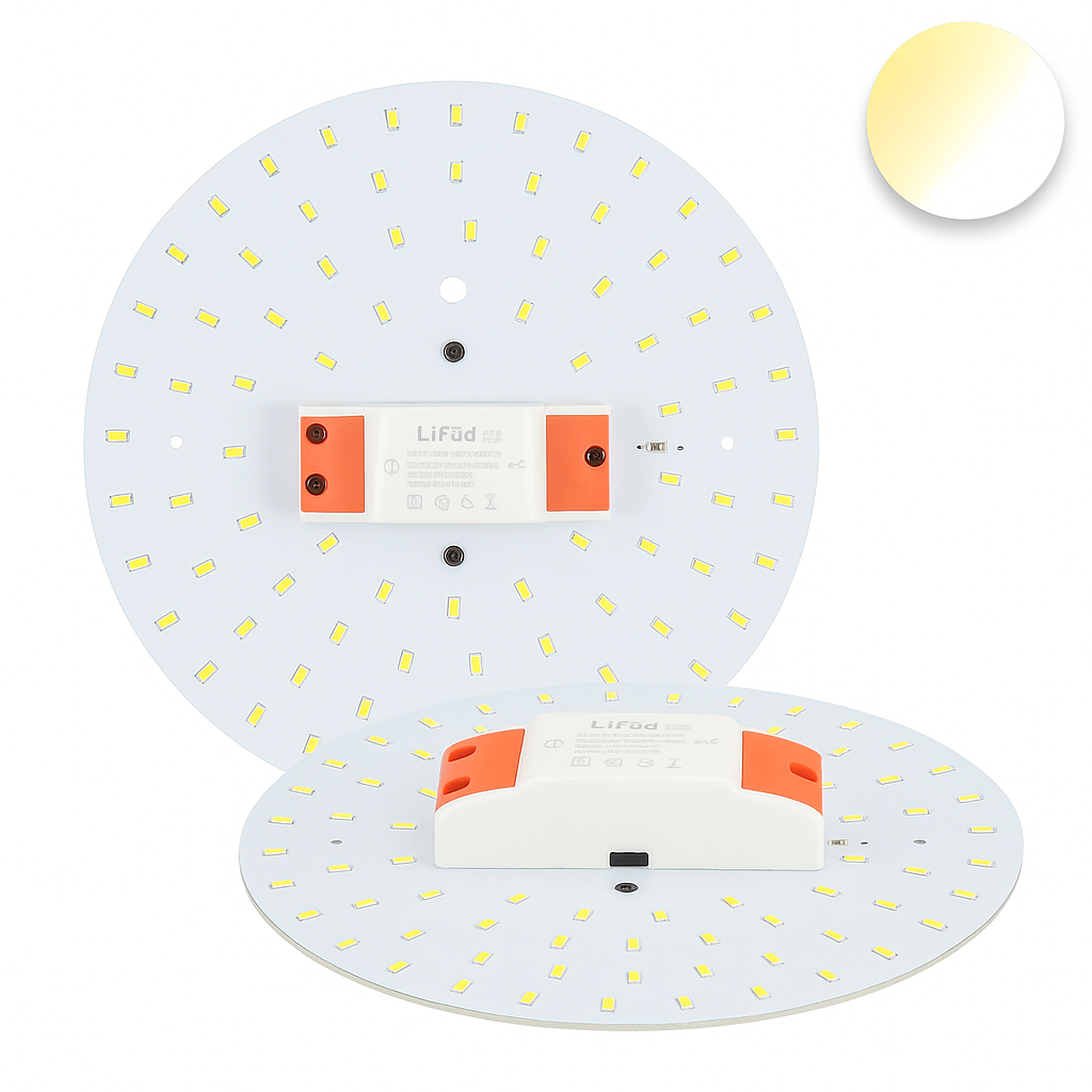 Panneau LED rond Ø350 mm, 25 W, SMD2835, CCT réglable 2700–5700 K, CRI ≥80, driver Lifud DT8 DALI, AC220–240 V, IP20.