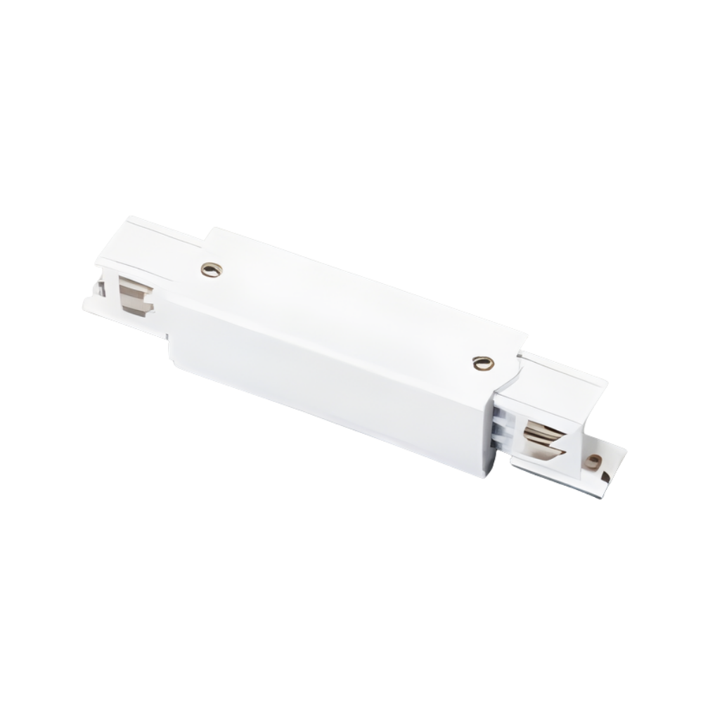 Connecteur droit pour rail triphasé 4 fils, sans nez. Matériau : PC + cuivre. Disponible en blanc ou noir.