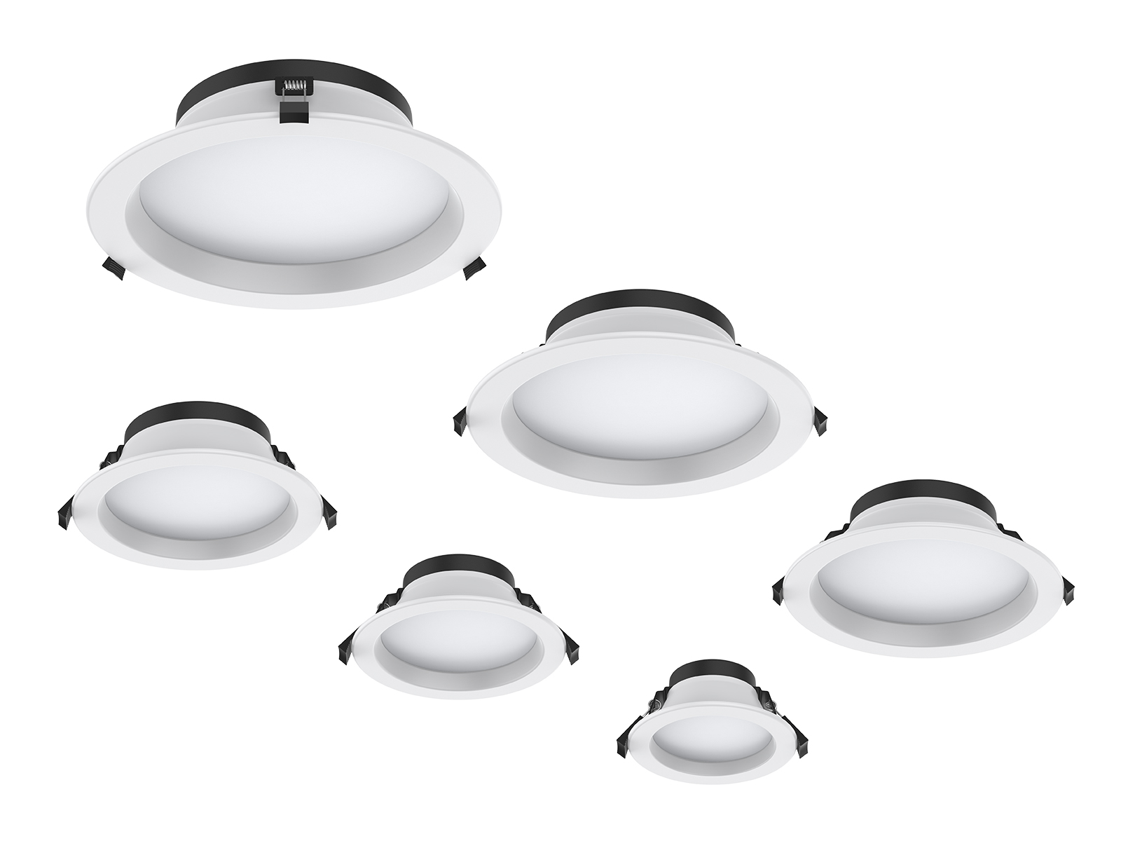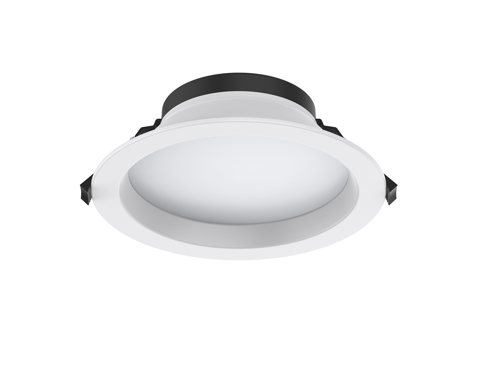 Downlight LED encastré 13 W, 1300–1450 lm, angle 100°, CCT sélectionnable (3000 K / 4000 K / 5700 K), Ø115 × 52 mm, découpe Ø90–95 mm, IRC 80, SMD2835, driver DALI dimmable, AC 220–240 V, IP20, DALI.