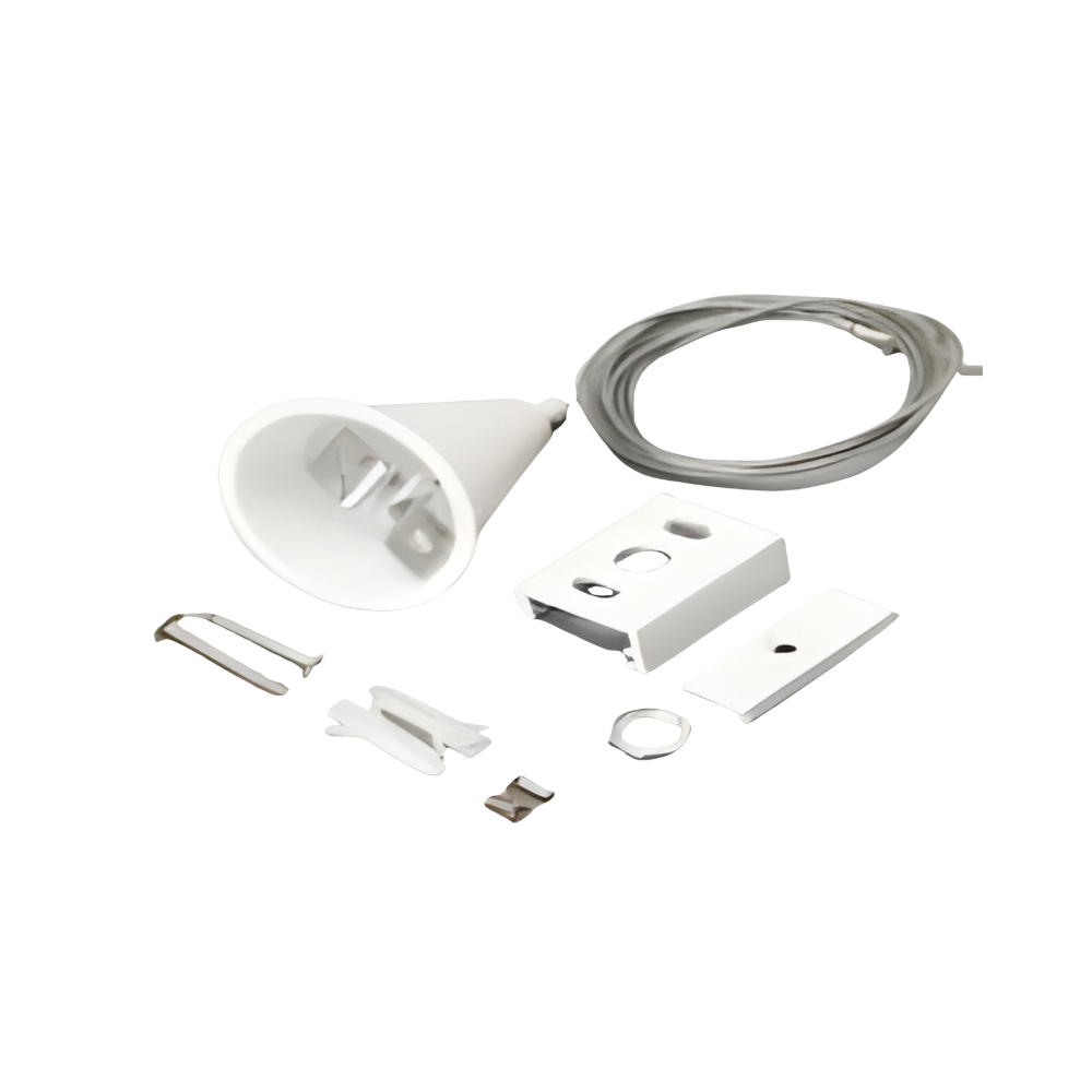 Kit de suspension avec câble en acier 1,5 m pour rail triphasé 4 fils. Matériau : PC + acier. Disponible en blanc ou noir.