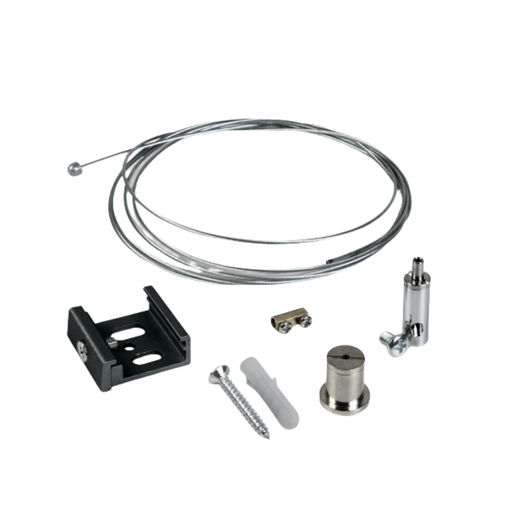 Kit de suspension pour rail triphasé. Comprend câble de suspension et accessoires de fixation.
