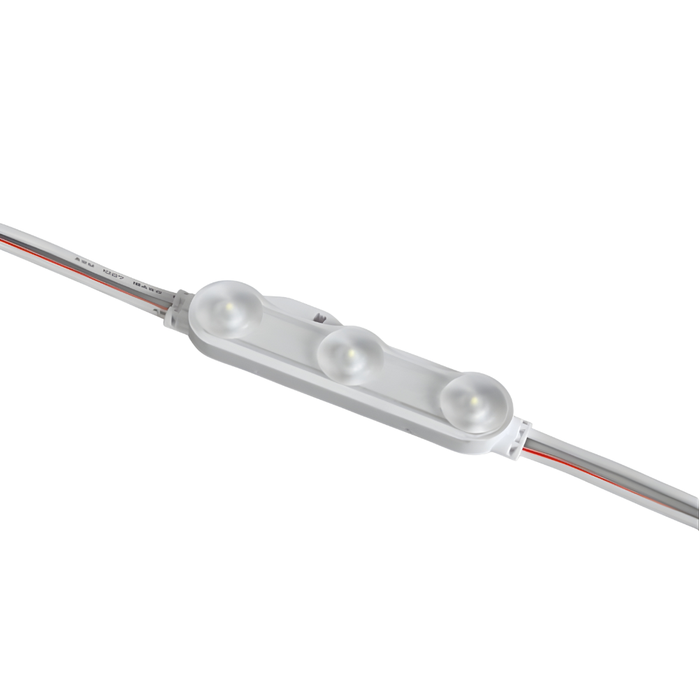 Module LED 3x 0,5W/7,5W/m, IP65, livré en chaîne de 50 pièces, longueur totale de 10m, nécessite un driver LED 12V DC à tension constante.