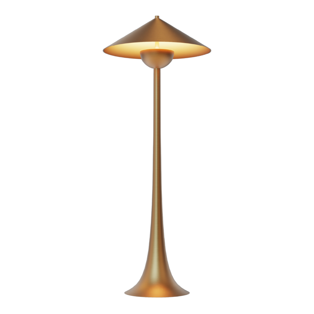 Lampadaire LED Ø160 × H290 mm, 3 W, flux lumineux 104 lm, 2700 K, IRC 90. Indice de protection IP44. Finition laiton élégante au design minimaliste, adaptée aux espaces résidentiels et hôteliers.