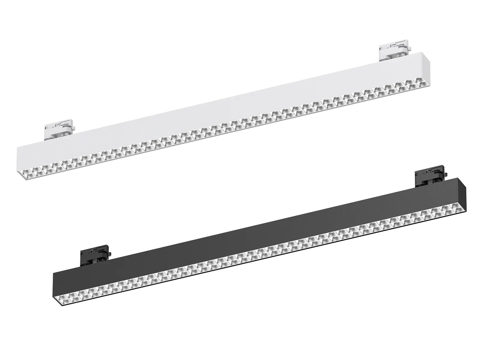 Luminaire linéaire LED avec diffuseur opalin, 1205×57×76 mm, puissance réglable 16 W / 22 W / 25 W / 32 W, 220–240 V AC, sans scintillement. Température de couleur 3000 K, angle 105°, 2835 SMD, IRC 80. Flux lumineux : 1950–2200 lm (16 W), 2650–3100 lm (22 W), 3200–3500 lm (25 W), 3900–4400 lm (32 W). Driver DALI inclus. Installation suspendue et raccordable en ligne continue.