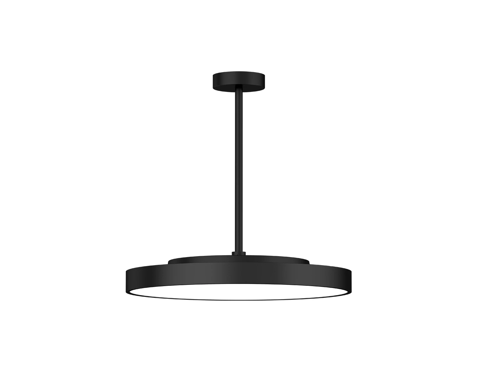 Panneau LED circulaire, Ø400×H102 mm, découpe Ø220–250 mm. Puissance 40 W, SMD2835, IRC ≥80. CCT commutable 3000/4000/5700 K. Flux lumineux 3750–4400 lm. Angle 120°. Entrée 220–240 V AC, pilotage DALI. Options de montage : encastré, en saillie, suspension par 1 tige ou 3 tiges. Disponible en version éclairage direct ou direct/indirect.