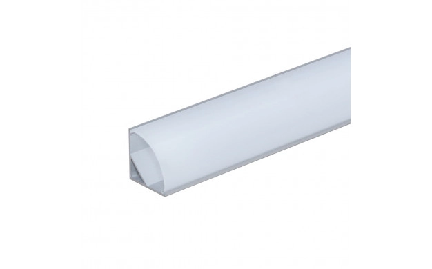 Profilé d’angle en aluminium pour ruban LED, longueur 2 m, 16 × 16 × 10,5 mm, corps gris avec diffuseur blanc.