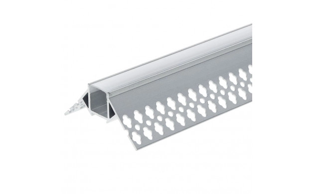 Profilé aluminium longueur 2 m, largeur 53.5 mm, hauteur 23.5 mm, corps gris avec couvercle blanc, adapté aux bandes LED.