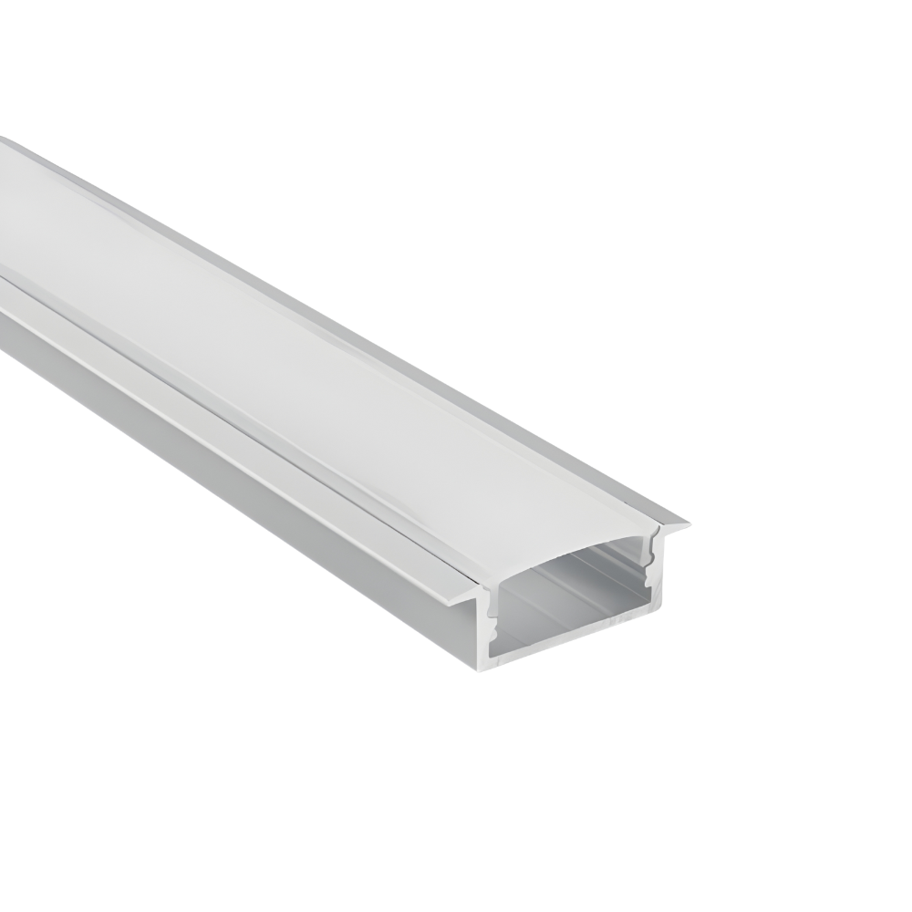 Profilé aluminium encastré longueur 2000 mm, largeur 30 mm, hauteur 10 mm, découpe 25 mm × 2000 mm, profondeur 12 mm, finition blanche, diffuseur PC.