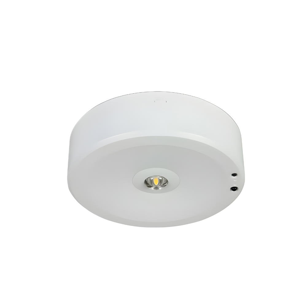 Luminaire de secours LED 3 W, montage plafond, 230 V, autonomie 3 h. Non-maintenu avec fonction auto-test. IP20.