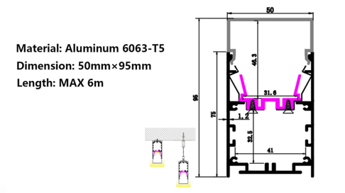 Luminaire linéaire LED, dimensions 1522×80×75 mm. Puissance 21 W,  IP20, rendement lumineux 150 lm/W, température de couleur 3000 K, CRI 80. Driver Osram DALI dimmable inclus. Corps en aluminium finition noire