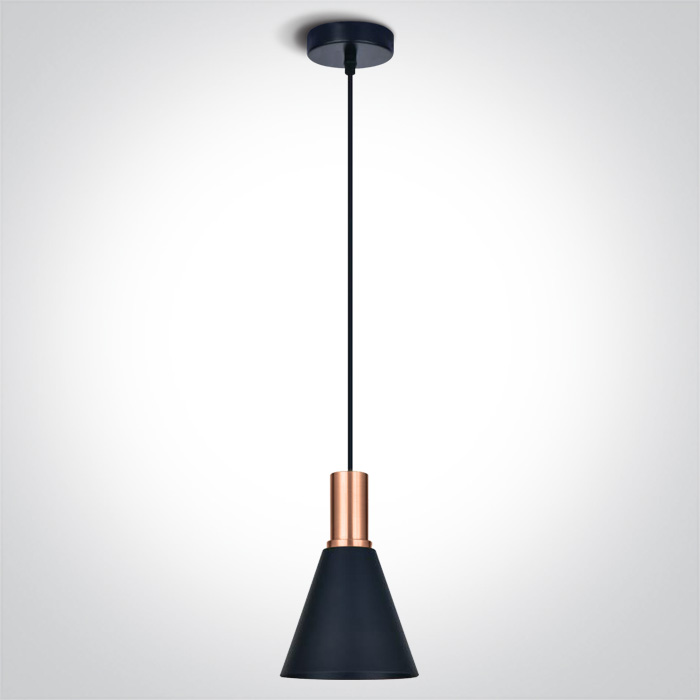 Suspension avec douille E27, puissance max. 10 W, corps en aluminium, forme circulaire Ø153 × H228 mm, finition cuivre, IP20, pour montage suspendu, 100–240 V, 50/60 Hz, compatible avec lampe E27 remplaçable.
